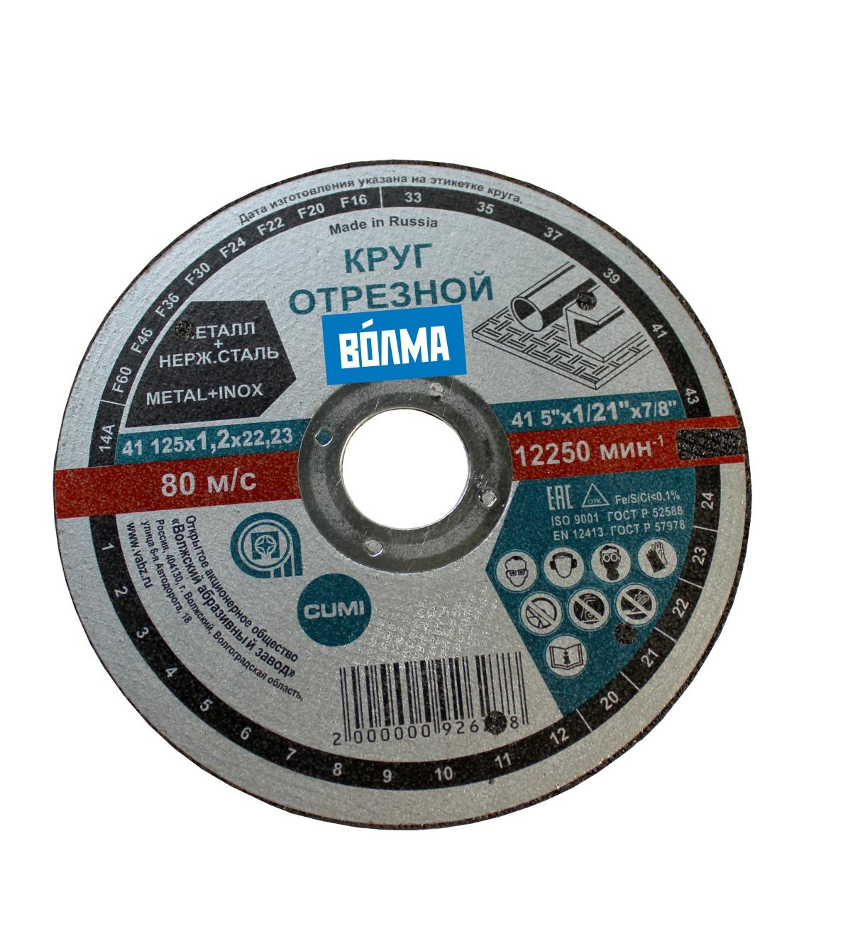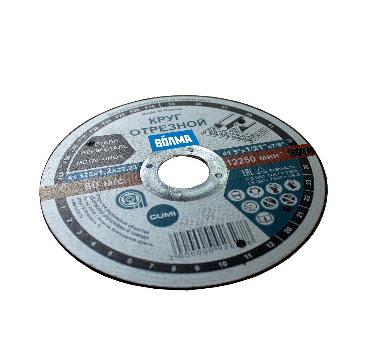 Круг отрезной по металлу 125х1,2х22,23 мм ВАЗ – это абразивный инструмент на основе смолы и шлифзерна, армированный сеткой из стекловолокна.